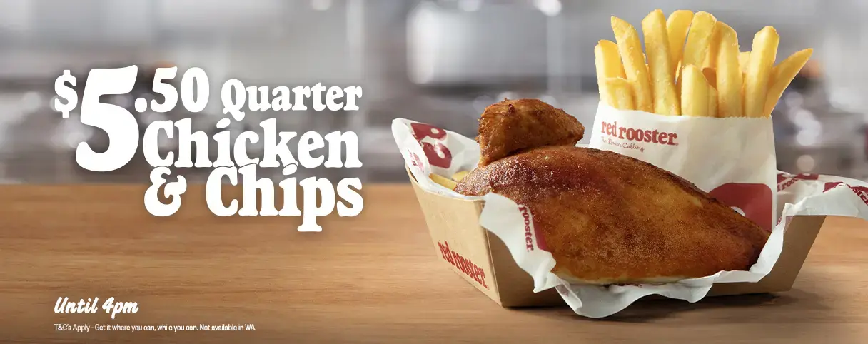 Enjoy our delicious meals you’ve come to know and love – instore and at home. Whether you’re craving fried chicken or roast chicken, a juicy chicken burger with a side of hot chips and crispy fried chicken or craving cheeky dessert for your sweet tooth, Red Rooster is here to satisfy that hunger. So, savour the unmistakable flavour of your favourite meals today!